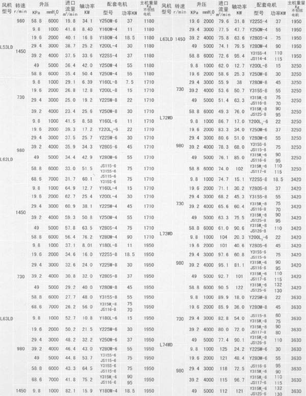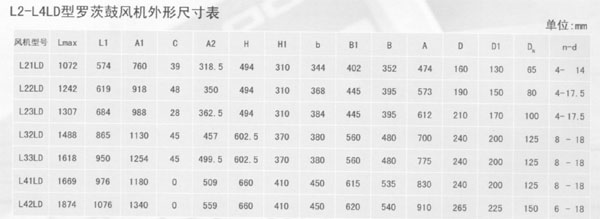 L系列羅茨鼓風機的流量范圍為1.46立方米/分--711立方米/分,升壓范圍9.8Kpa一68.6Kpa。