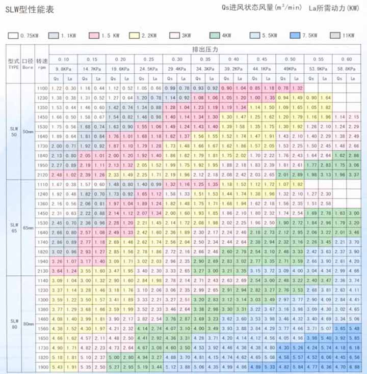 1.性能所表示風量是標準進風狀態(tài)下的風量,所謂標準狀態(tài),就是溫度20℃,絕對壓力10332Kgf/cm2[101.3Kpa]相等濕度65%。